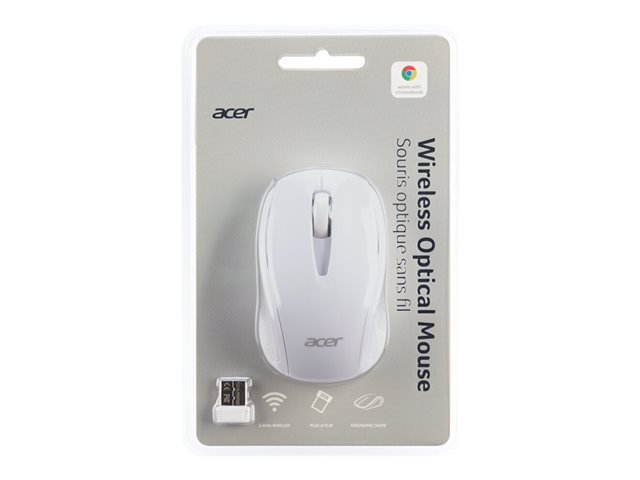 Acer M501 - Souris - optique - 3 boutons - sans fil - 2.4 GHz - récepteur sans fil USB - blanc - Pour la vente au détail - pour Chromebook 31X; 512; 71X; Chromebook Enterprise Spin 513; Chromebook Spin 51X; 713 GP.MCE11.00Y