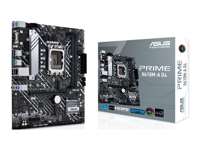 ASUS PRIME H610M-A D4 - Carte-mère - micro ATX - Socket LGA1700 - H610 Chipset - USB 3.2 Gen 1, USB 3.2 Gen 2 - Gigabit LAN - carte graphique embarquée (unité centrale requise) - audio HD (8 canaux)