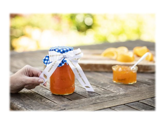 Lors d'occasions spéciales, utilisez le ruban TZe-R254 avec votre étiqueteuse P-touch pour adresser vos vœux aux personnes qui vous sont chères.  Laissez libre cours à vos talents et personnalisez vos cadeaux, vos cartes et vos créations avec le ruban tissu TZe-R254 Brother original.