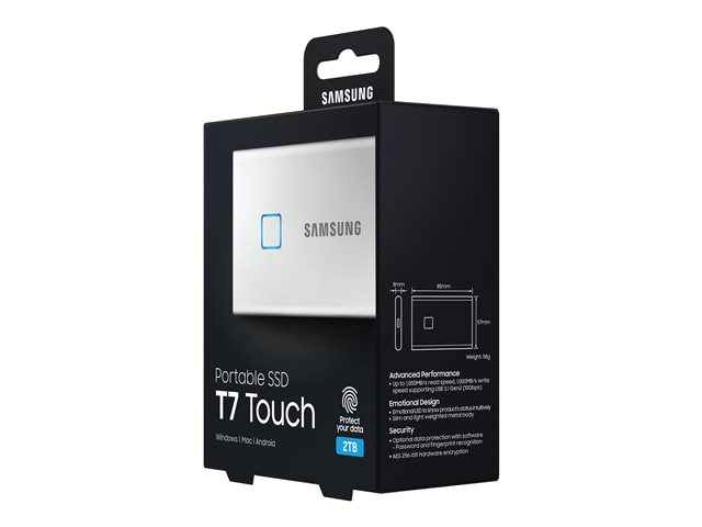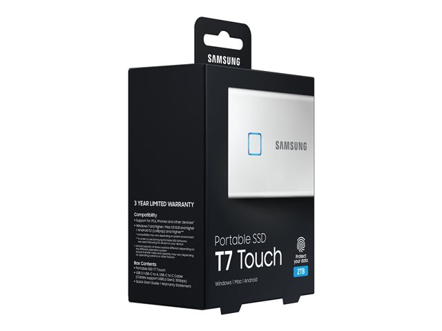 Samsung T7 Touch MU-PC2T0S - SSD - chiffré - 2 To - externe (portable) - USB 3.2 Gen 2 (USB-C connecteur) - AES 256 bits - argent