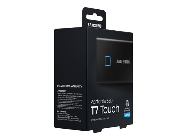Samsung T7 Touch MU-PC500K - SSD - chiffré - 500 Go - externe (portable) - USB 3.2 Gen 2 (USB-C connecteur) - AES 256 bits - noir