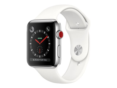 Apple Watch Series 3 (GPS + Cellular) - 38 mm - acier inoxydable - montre intelligente avec bande sport - fluoroélastomère - blanc doux - taille de bande 130-200 mm - 16 Go - Wi-Fi, Bluetooth - 4G - 42.4 g MQLV2ZD/A