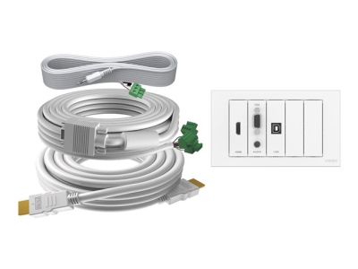 VISION TechConnect 3 Wall-Mount Faceplate Package - Kit plaque modulaire avec connecteurs enclenchables et câbles - HD-15, fiche mini-phone Stéréo 3,5 mm, HDMI, USB Type B - blanc mat - à commande double